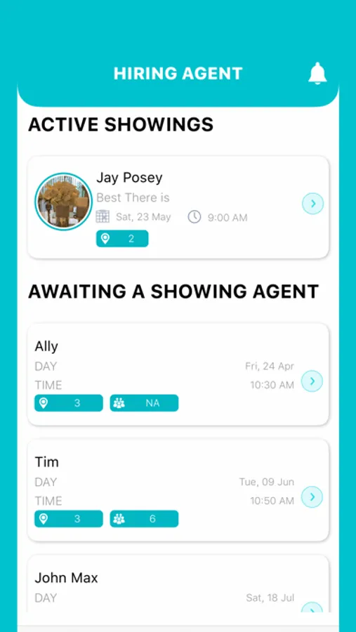 A dynamic app made with Top Realtors and Rookie Real Estate Agents in mind. This app features the ability to hire colleagues to show houses when you are not available.