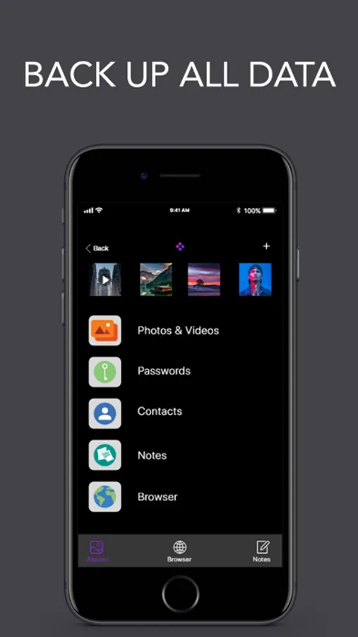 Φ Store securely Photos, Videos, Notes, Contacts, Passwords...
