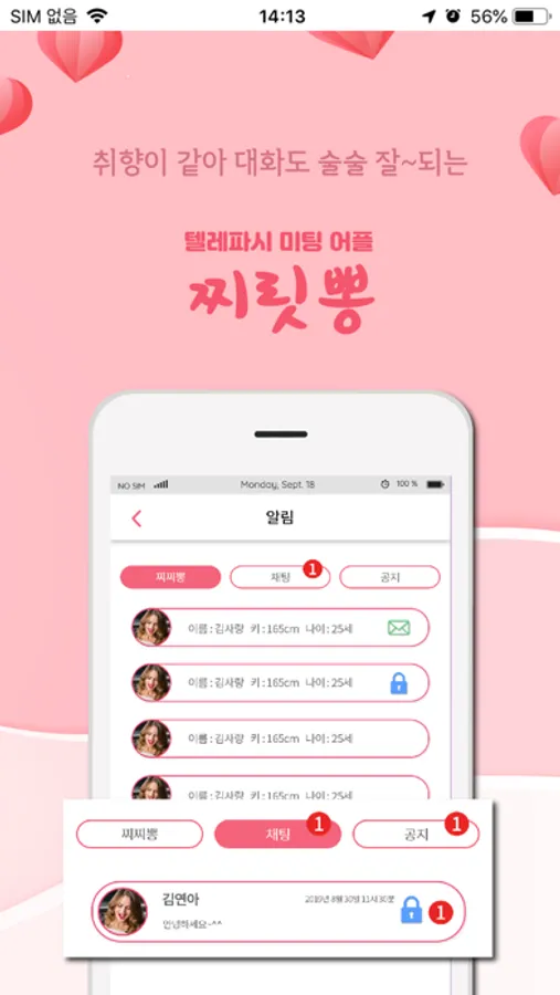 국내 최초 신개념 소개팅 앱 찌릿뽕이 당신의 연인을 찾아드립니다.