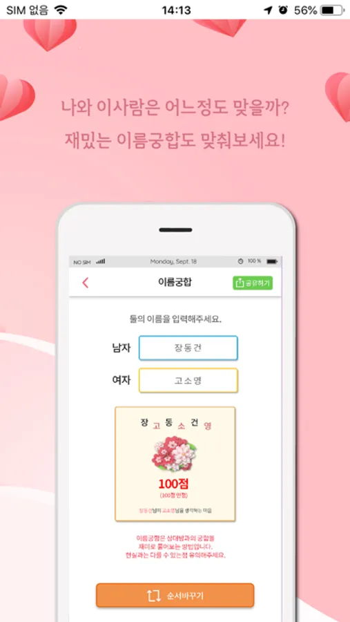 1. 어릴적에 한번쯤은 해보았던 이름궁합 기능이 추가되었습니다.