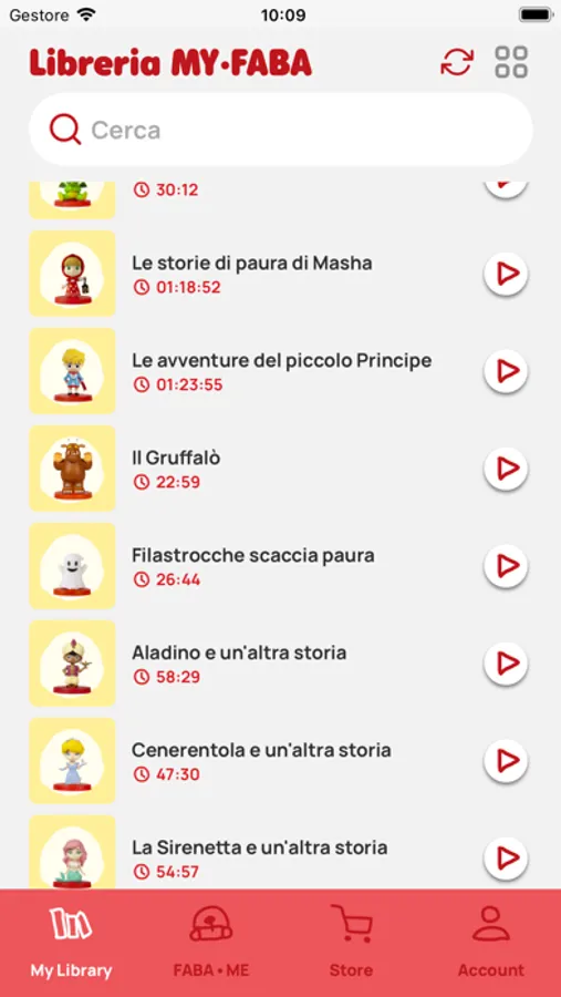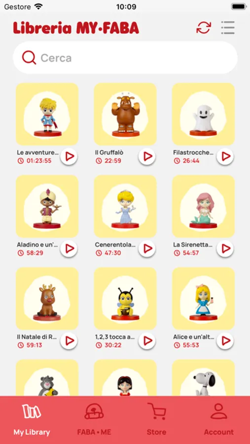 - Ascoltare le preview dei contenuti scansionando i QR code presenti sulle confezioni dei Personaggi sonori che troverai nei negozi