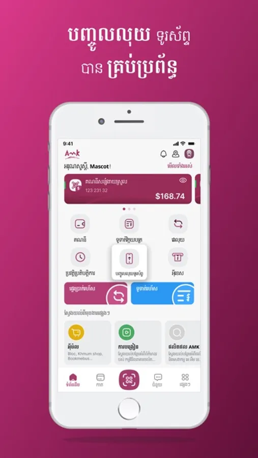 AMK Mobile Banking allows our customers to perform both financial and non-financial transactions. Example: