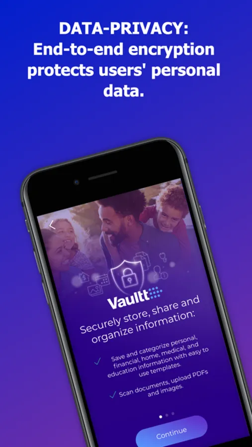Vaultt is secure by design with end-to-end encryption to protect users’ sensitive personal data. Vaultt employs a hybrid cryptographic approach, layering asymmetric and symmetric encryption, to ensure the ultimate in speed and data protection. This higher level of security assures privacy and confidentiality, exceeding the security of today’s standard banking mobile apps. Encryption and decryption occur in the user’s app to ensure that only the user and invited members can access the data. Vaultt does not have access to the cryptographic keys required to decrypt users’ data, ensuring that even Vaultt employees cannot access it. Simply put, your data is safe and sound in your Vaultt.