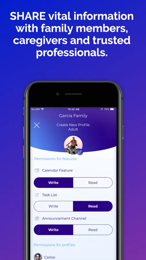 - Children and siblings of aging parents to share and access important health and wellness information, and for storing banking details, prescriptions, Wills, Power of Attorney and other important information. Collaborate the care!
