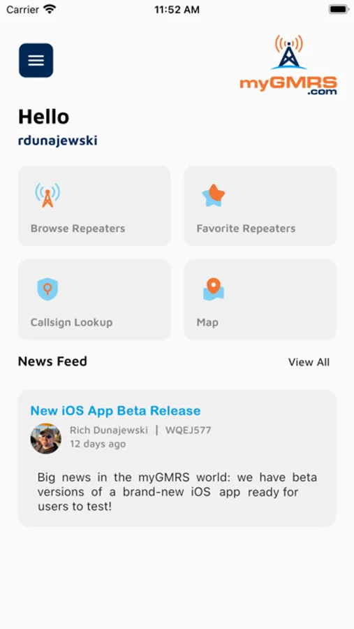 Individuals can find two-way radio repeaters in the General Mobile Radio Service (GMRS) to use in their area, coordinate their repeaters, lookup callsigns, and find other nearby users.