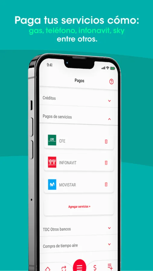 • Paga tus servicios (luz, agua, teléfono, TV de paga y más).