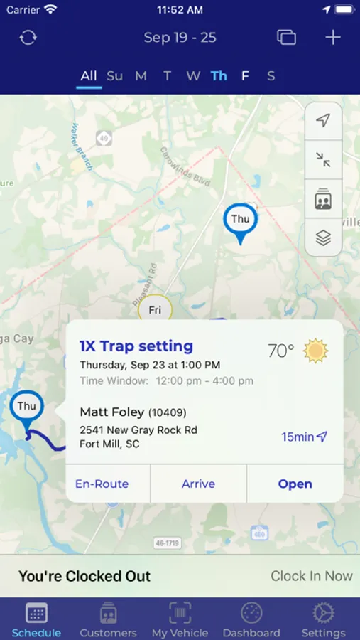* Your schedule is simple to understand; view by calendar, list or a routed-map.