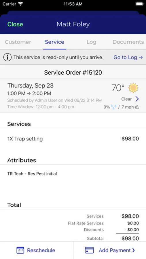 Other great features include credit card payments in the field, adding flat rate services and inventory items to a service order, scheduling follow-ups, rescheduling services, vehicle inventory dashboards, daily & weekly dashboard product value widgets, and much more.