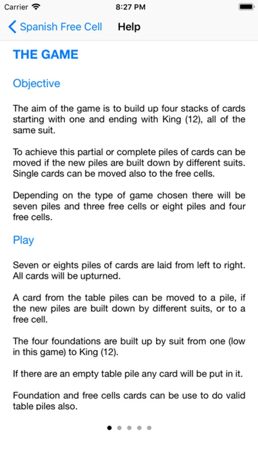 - The aim of the game is to build up a stack of cards starting with one and ending with King (12), all of the same suit.