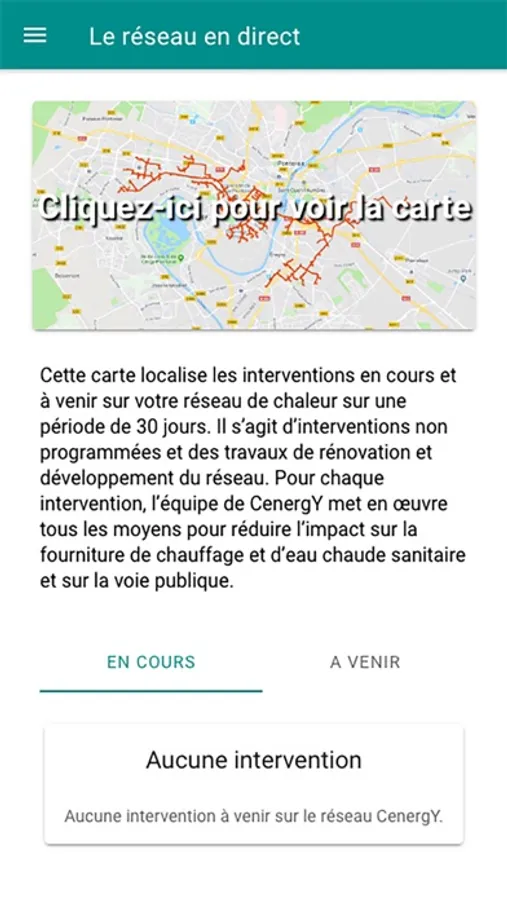 Cette application vous permet de suivre en direct votre réseau de chaleur : son actualité et les interventions en cours et à venir.