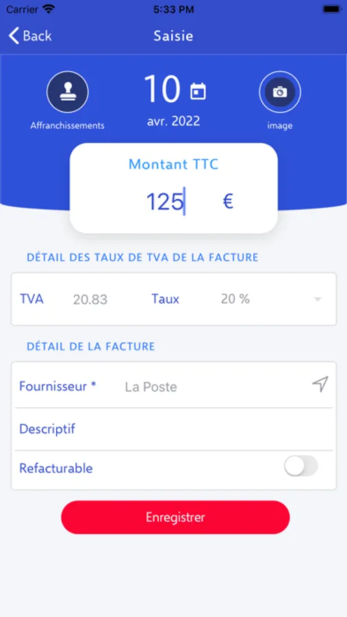 Prenez vos justificatifs en photo, saisissez les données du ticket, puis sauvegardez en attendant le prochain ticket.