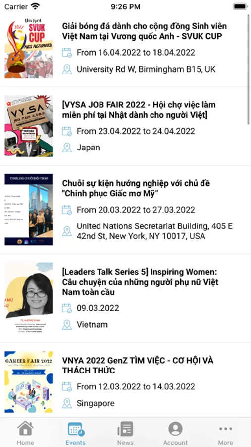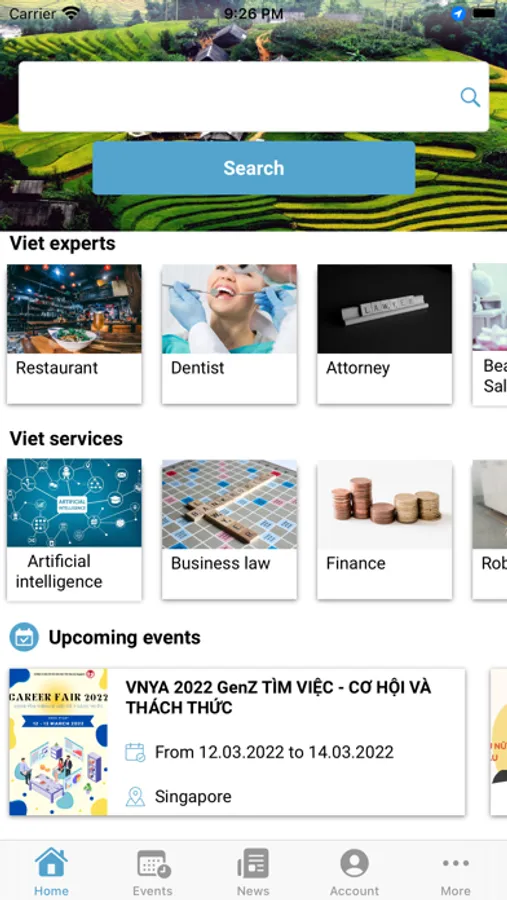 The system includes functions to search for experts, services, events, news of overseas Vietnamese community.