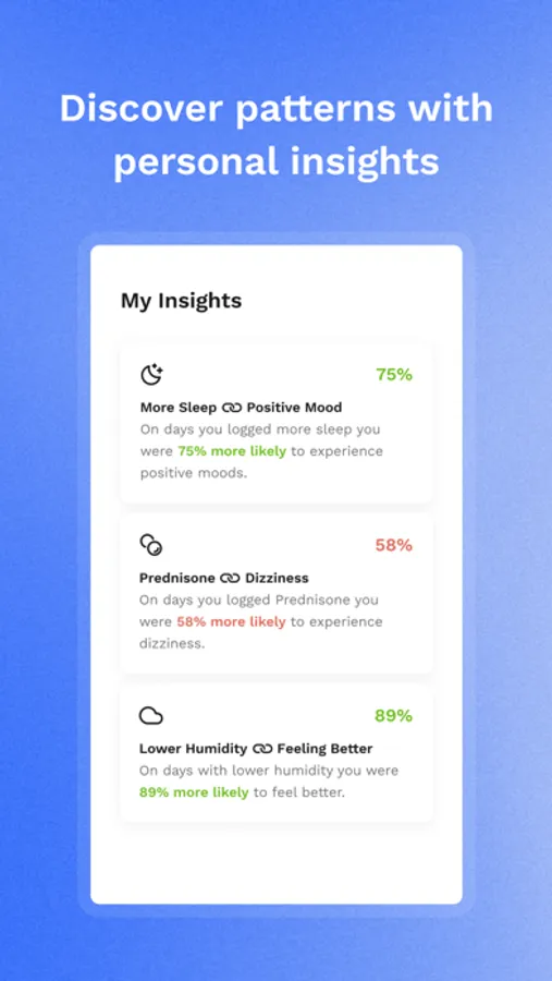 As you track, get personal insights that identify how your actions and activities are related to how you feel. These AI insights take the guesswork out of navigating your condition.