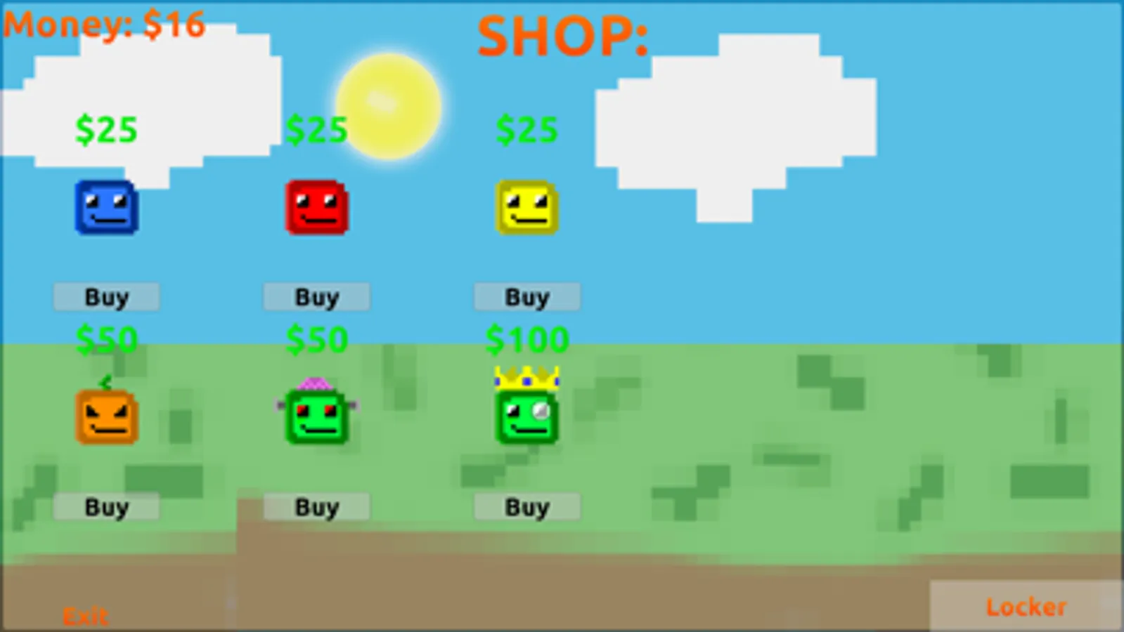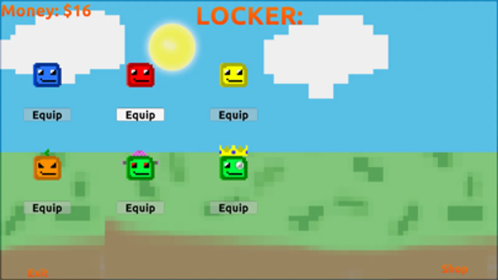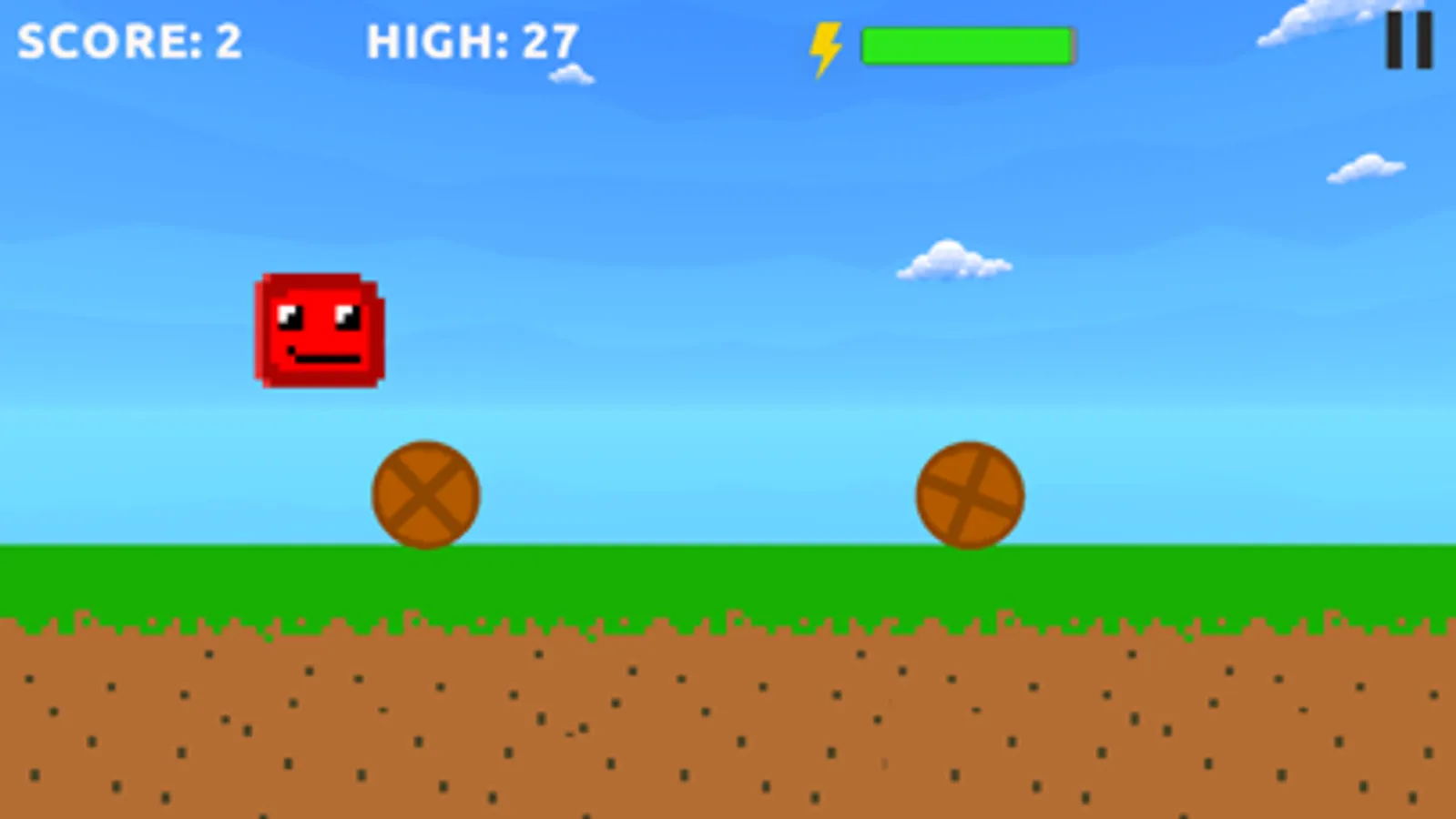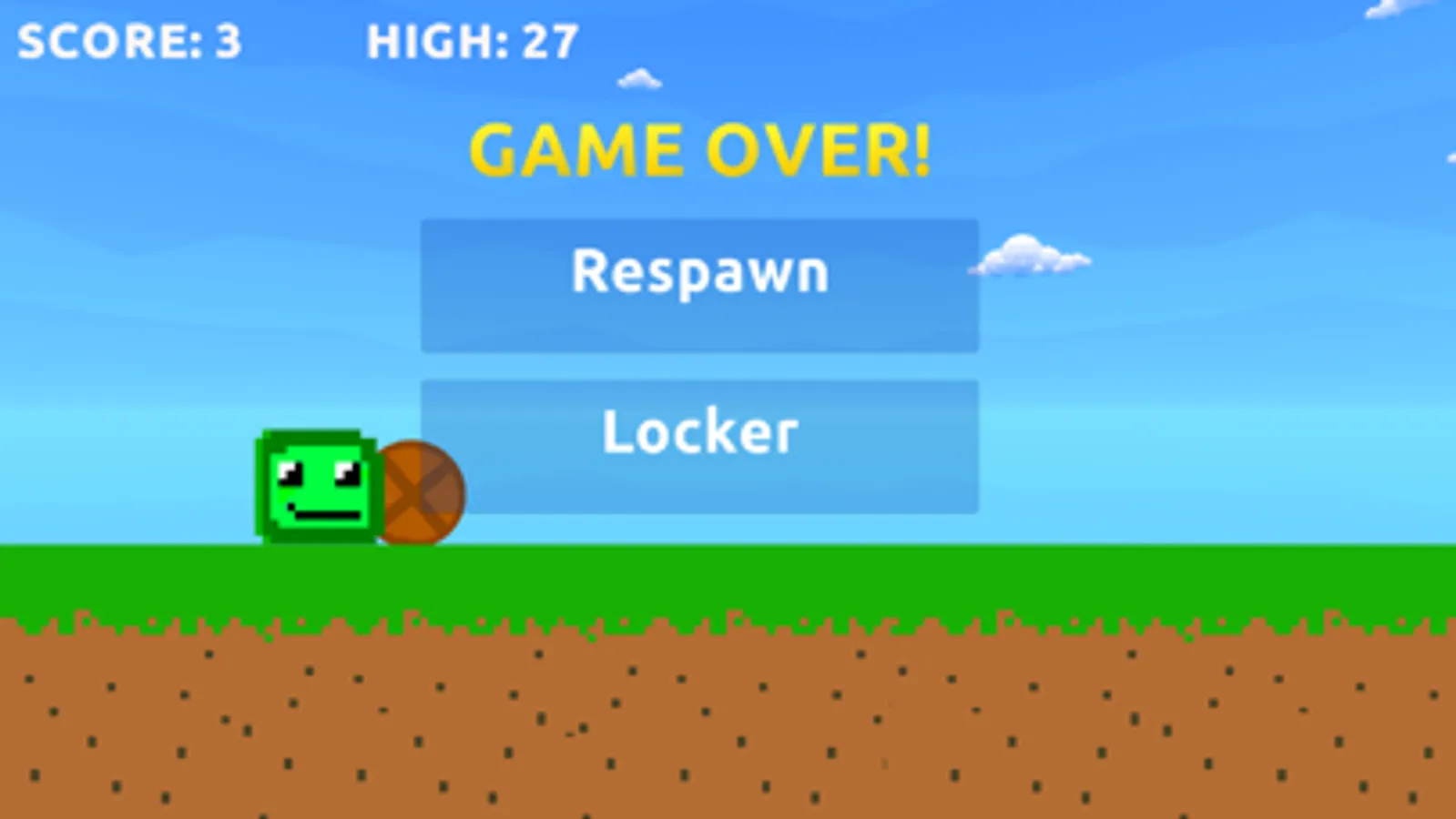 In Barrel Jump, you control your character, Jumpy, to dodge barrels that are constantly being hurled at him. If many barrels are coming at him, he can jump more than once over them. Some of the barrels thrown at him are gold, which means that they are coin barrels. Coin barrels give you one more coin in the shop. When you get enough coins, you can buy a skin from the skin shop, and you can equip it in your locker to use it in the game. You also score in the game whenever a new barrel comes. If your score was higher than any other score you got, it will be added to your high score. On the top of the screen, you will see a green bar with an energy icon next to it. This is the energy bar. The energy bar shows how many more times you can jump. If it gets too low, you will lose the ability to jump. Every time another barrel is spawned, your energy will replenish by a bit.