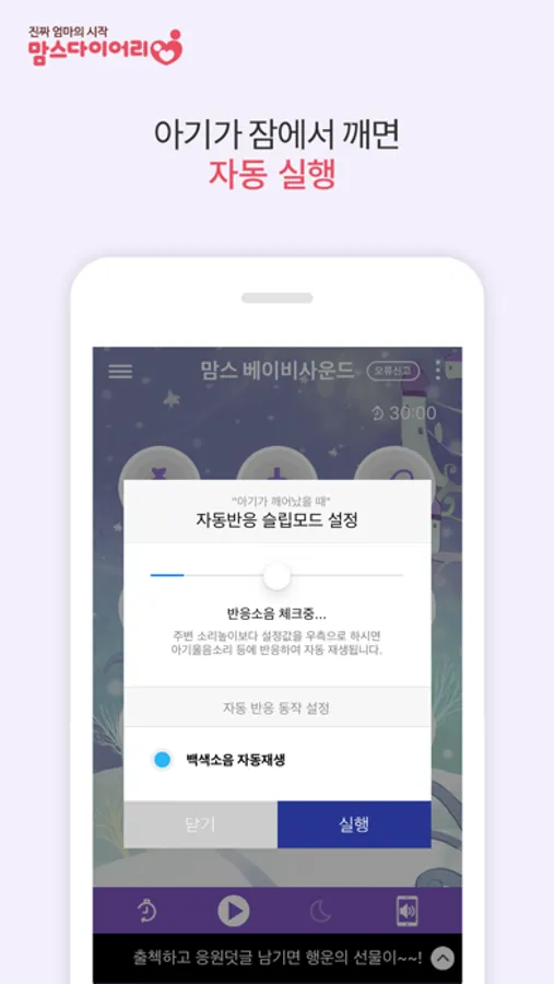 - 잠든 아기가 깬 울음소리에 자동 반응하여 백색소음을 실행합니다.