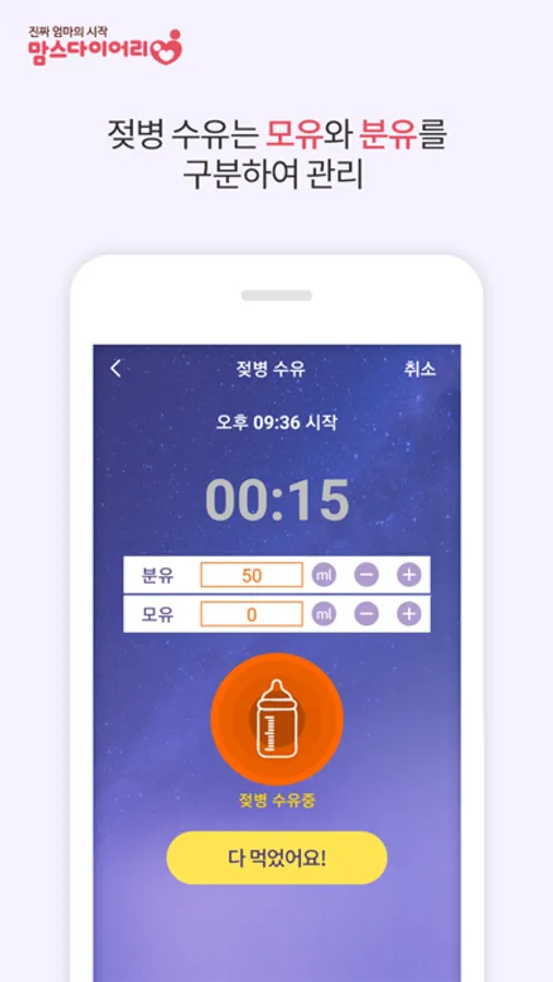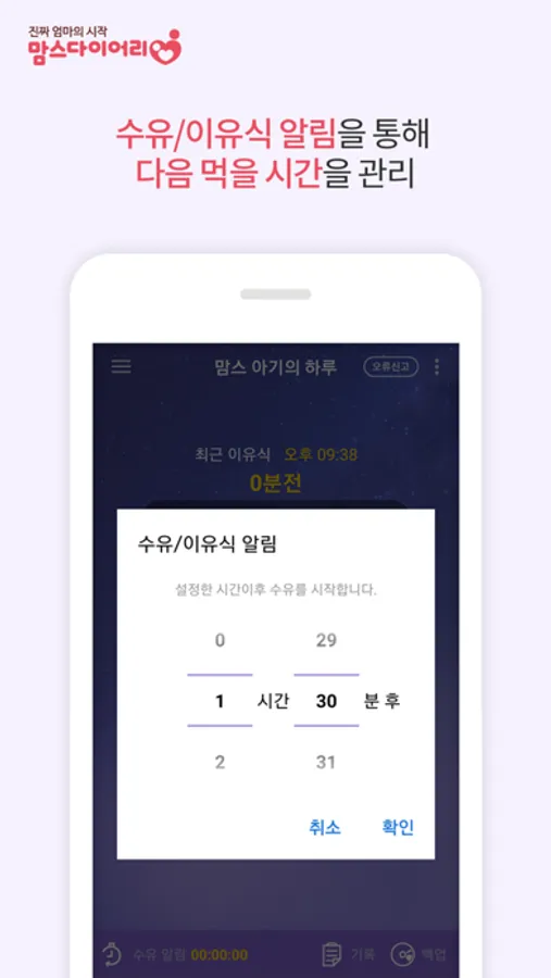 ㆍ 수유/이유식 알림 타이머 제공