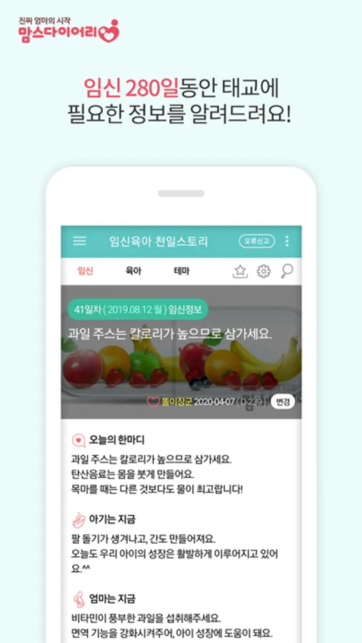 ㆍ 임신 일자별 태아와 산모에게 필요한 맞춤 임신/태교 정보 제공