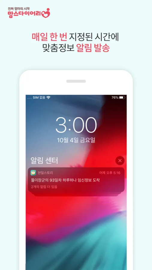 우리 아가에게 꼭 필요한 맞춤 육아정보를 하루하나 알림으로 알려드려요.
