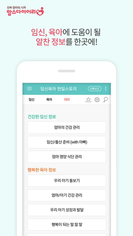 - 앱 사용 중에 문제 또는 오류가 발생하는 경우 맘스다이어리 고객센터(http://www.momsdiary.co.kr)로 문의를 남겨주세요.