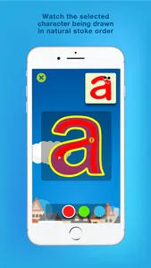 The game is simple. First, pick one letter or number from the carousel. Watch the selected character being drawn in its natural stroke order. Now it's your turn. Draw the character with your finger along the dotted line. Next, listen to the pronunciation of the character then repeat it until it's recognized.