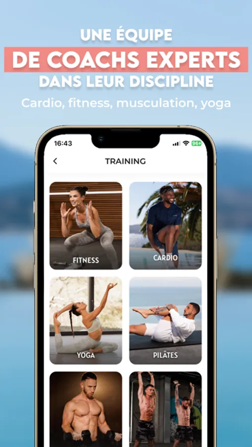 • +15 disciplines pour tous les niveaux : cardio, fitness, musculation, cross-training, kickboxing, yoga, pilates, méditation, mobilité, danse et bien d’autres.