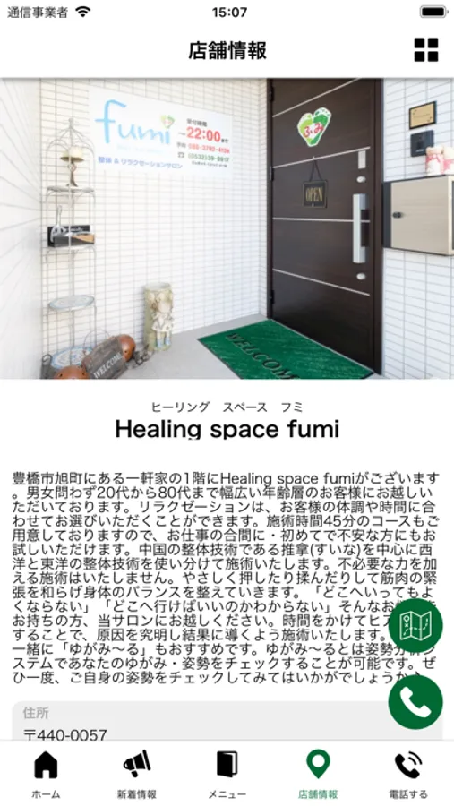 アプリをインストールしていただくことにより『Healing space fumi』を、より便利に身近にご利用していただけます。