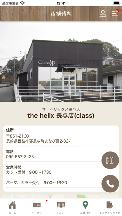 店舗のマップが表示され、地図アプリとも連携しているので、初めてのご来店の時も簡単に見つけることができます。
