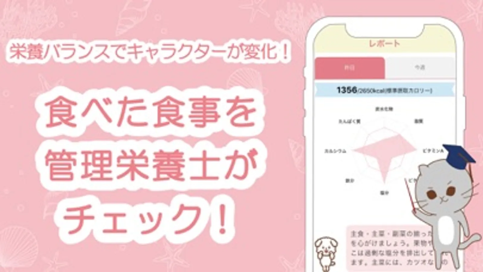 冷蔵庫の食材管理や、賞味期限が近い食材をお知らせする機能や、食べたものの栄養バランスについて、管理栄養士がアドバイスを行ったり、あなたの食事をAIがまとめてサポート。
