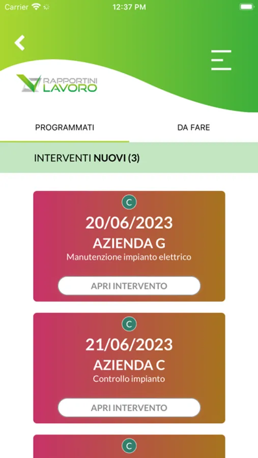 La programmazione degli interventi ti permette di organizzare al meglio il tuo lavoro. Ti offre la possibilità di assegnare gli interventi direttamente ad un tecnico, il quale riceverà una notifica e potrà visualizzare i dettagli direttamente dalla sua app in “interventi da eseguire”.