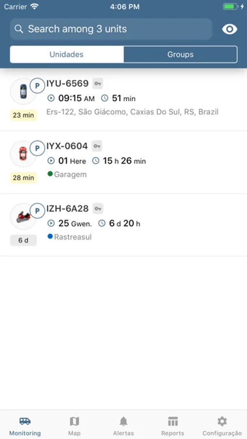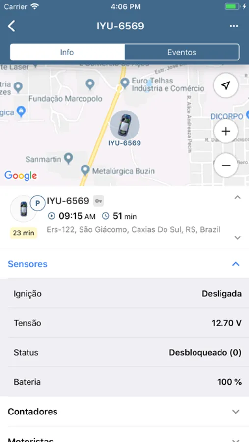 - Gerenciamento dos Veículos: Obtenha todas as informações sobre o estado de movimento, ignição e localização em tempo real.