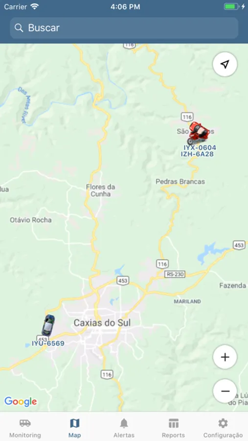 - Mapa: Acesse os rastreados, cercas eletrônicas e percursos diretamente nos mapas, além de comparar sua localização com a dos rastreados.