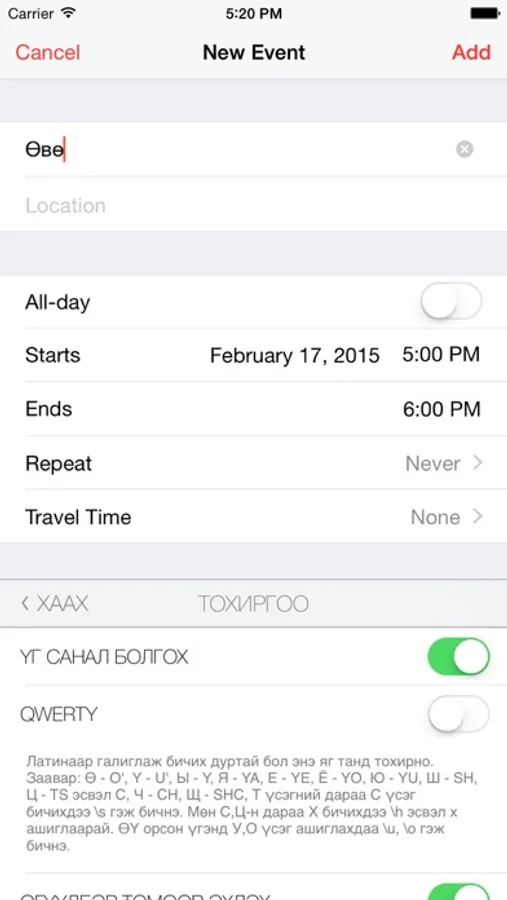 Үг санал болгодог, QWERTY layout дэмждэг, үг үсгийн алдааны шалгууртай Монгол кирилл үсгээр бичихэд зориулагдсан app.