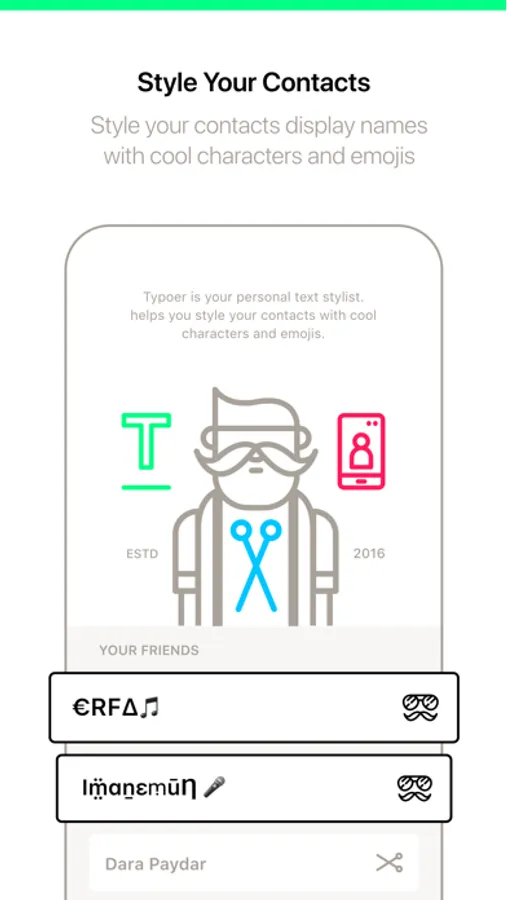 It helps you style display names of your contacts with cool random fonts, characters and emojis nicely picked from our amazing fonts collection. Create countless styled names for your friends and loved ones in your contact list. Also, you can easily search your contacts, style them and sync it just with a tap.