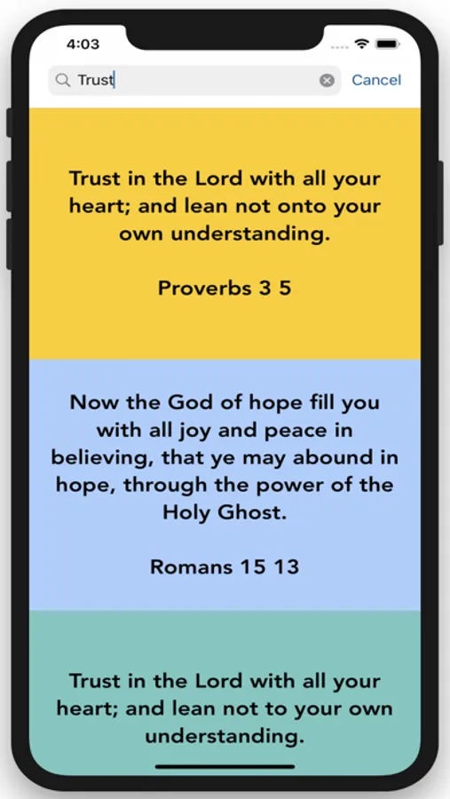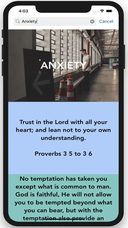 You can also search by keyword like 'Anxiety' or author like 'John' to get relevant verses.