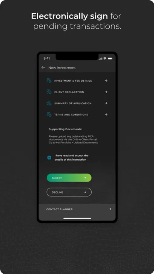 You can sign in easily using your fingerprint or facial recognition and view your fund portfolio, anytime, anywhere 24/7. You can digitally approve or decline transactions initiated by your Financial Planner. You have daily access to market commentary and insights via the app.