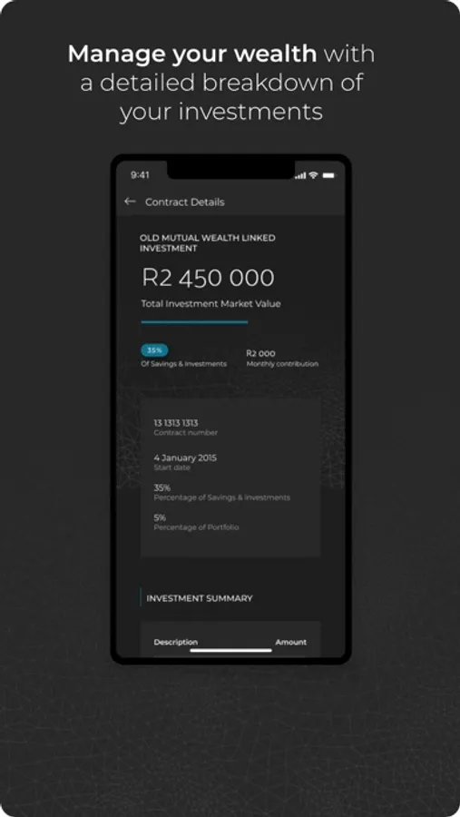 The new Old Mutual Wealth app allows you to access and view your retirement savings and income products. You will have access to your broader savings and investment portfolio. Your risk products are at your fingertips.