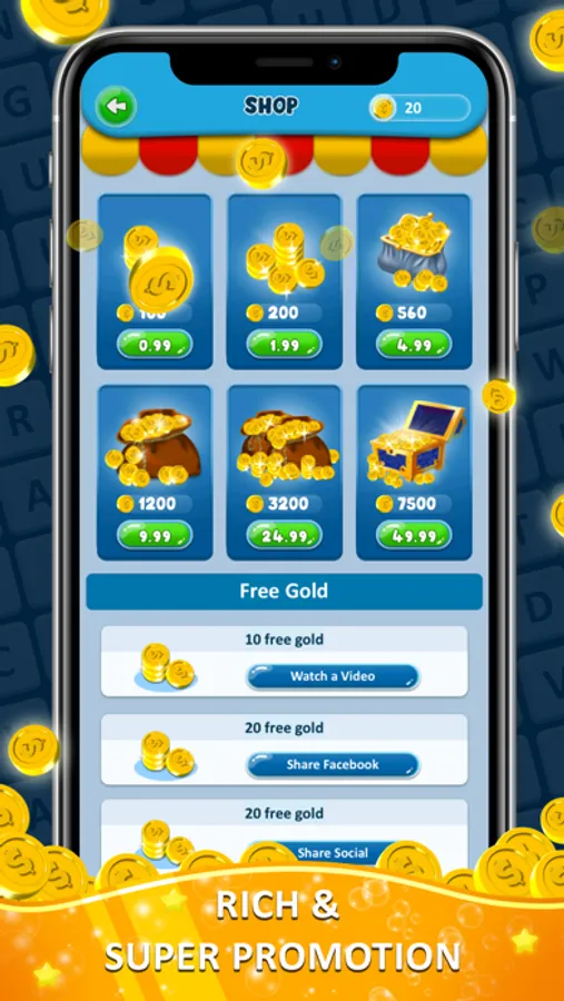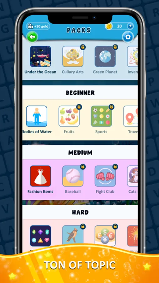 Using your sagacity to uncover hidden words and build as many words as possible! Pass the challenges in each topic to collect more and more coins