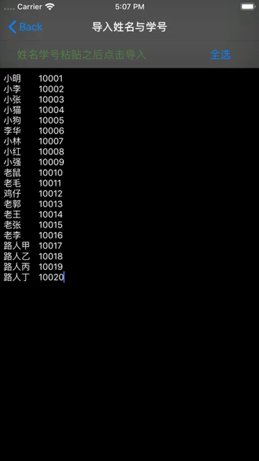 首先你需要把班级信息表的姓名或者学号那一栏复制到导入界面中之后点击导入,
