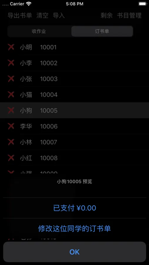 这样你就搭好了班级信息和书目信息了,之后每个同学订书的需求得到之后点击那位同学,之后点击修改这位同学的订书单,就可以编辑这位同学的订书信息了。