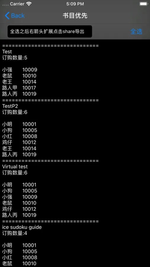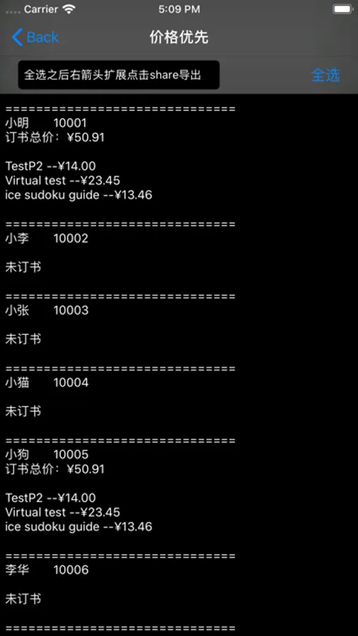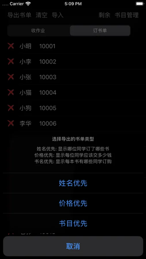 最终都订完了,你可以点击左上角的导出书单,核对的时候点击姓名优先,让大家看一下是否完全符合自己订书的需求。
