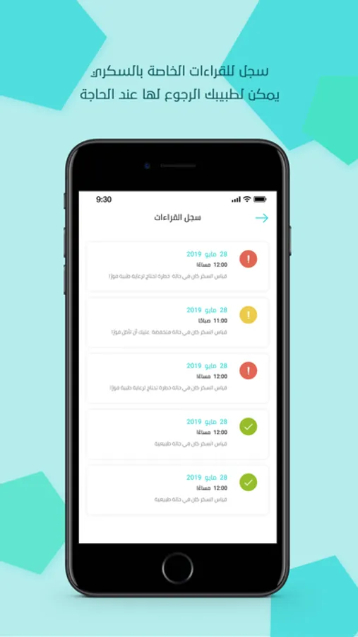- سجل للقراءات الخاصة بالسكري يمكن لطبيبك الرجوع لها عند الحاجة.