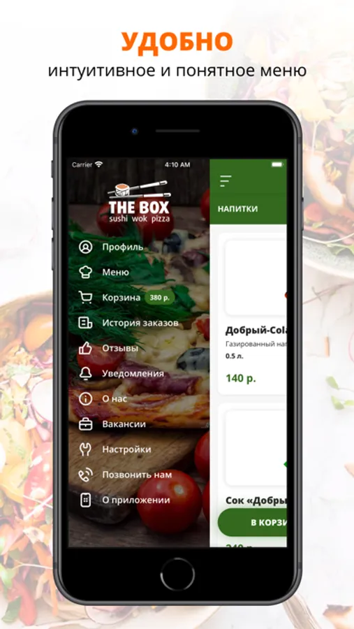 Воспользуйтесь удобным приложением для заказа еды «THE BOX».