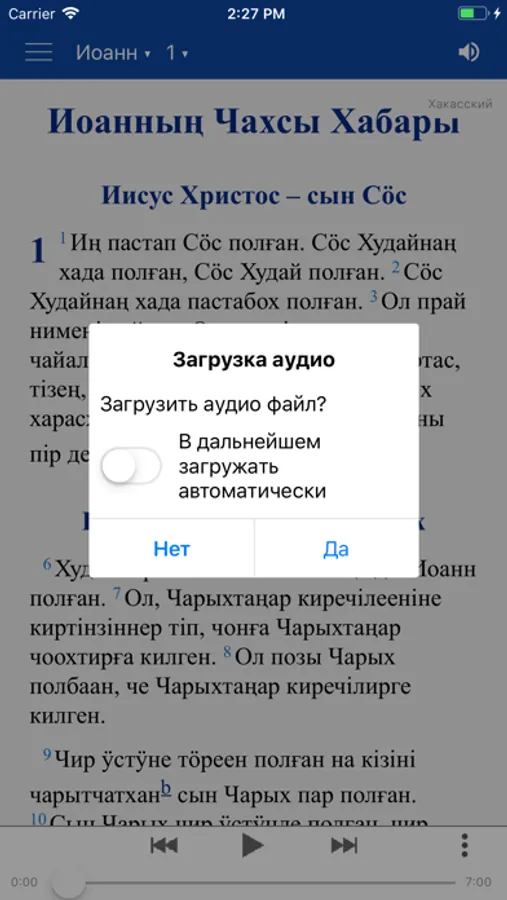 The application contains the translation of the New Testament into the Khakas language, produced by the Institute for Bible Translation.