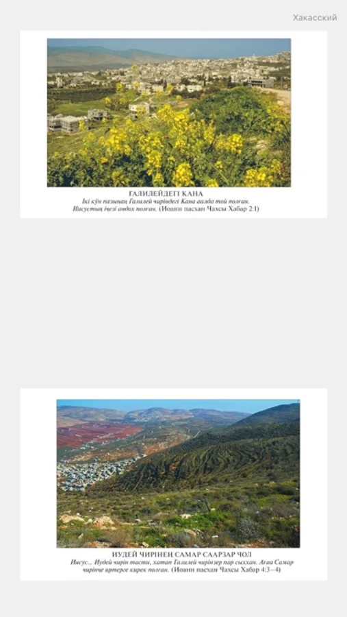 The app also includes a concise dictionary of key terms, place names and proper names and photographs and maps of biblical places. It is also possible to listen to the audio version of the Khakas translation. The audio files can be downloaded on demand.