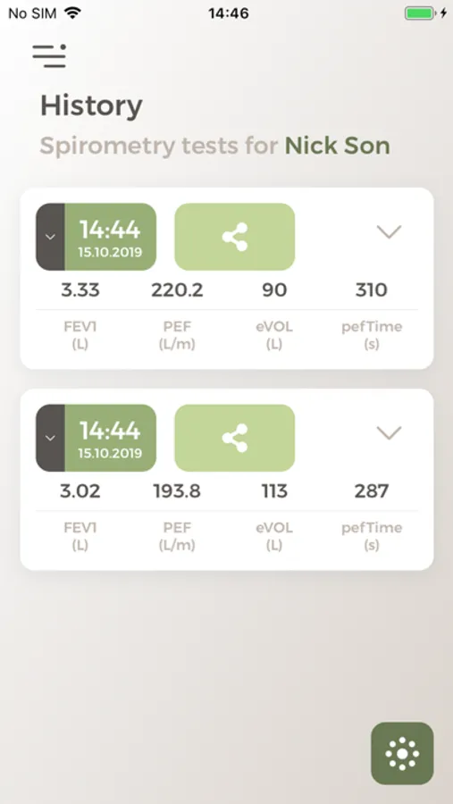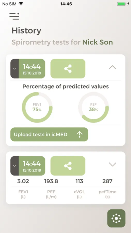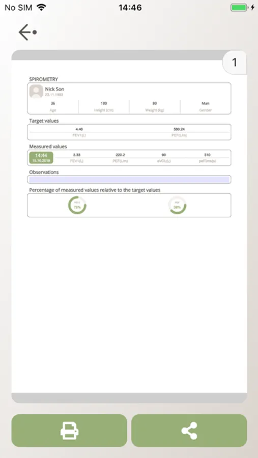 The application works based on the patient credentials provided by the doctor together with the SmartOne spirometer and offers the following functionality: