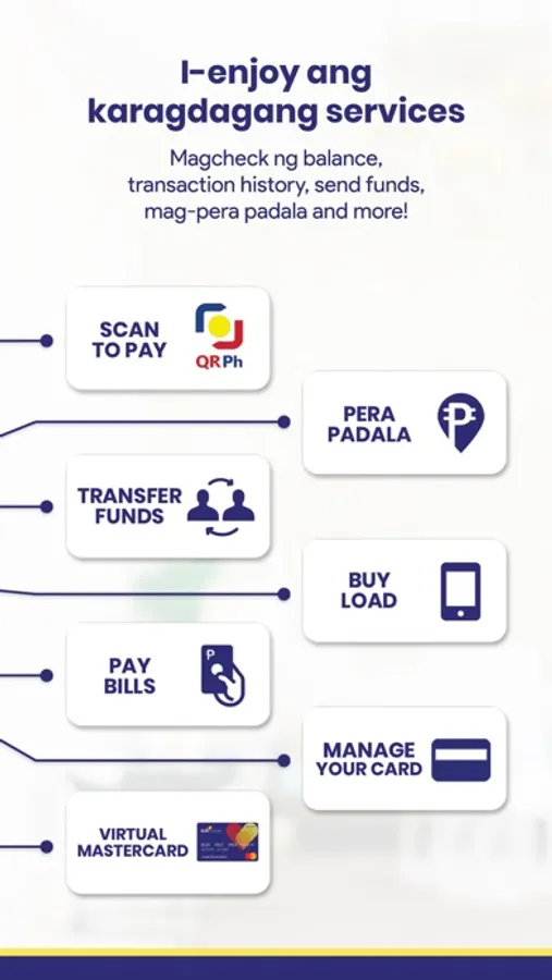 - Magbayad ng BILLS for electricity, credit cards, tuition fees, at iba pang utilities.