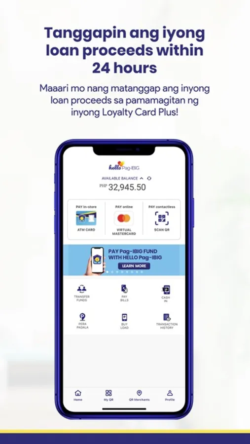 - Makatanggap ng pera gamit ang iyong sariling QR PH code na ma-gegenerate sa iyong Hello Pag-IBIG app.