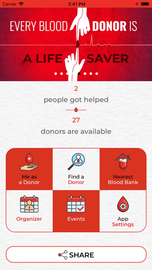 The Blood Donation app developed by Zabingo Softwares is made with a view to provide community service in mind and not any commercial gain. This application would serve the purpose of finding donors for particular blood groups as well as the blood banks with respect to the search parameters concerning the location/area. The app provides three basic features through which one can either register his/her name as a donor, find a donor for their need and find the nearest blood bank as well as access the settings of the app. Through this app, one can get the details (phone number and location) of the registered donors as well as the Blood banks searched on the basis of location).