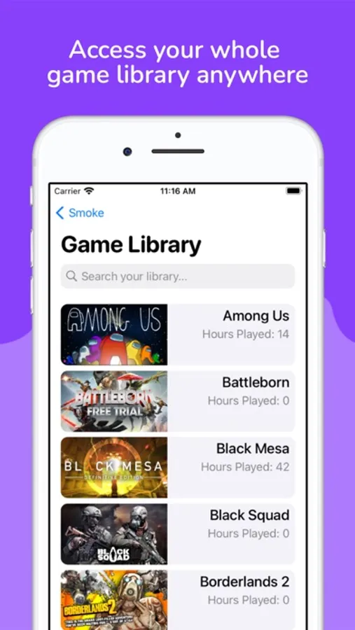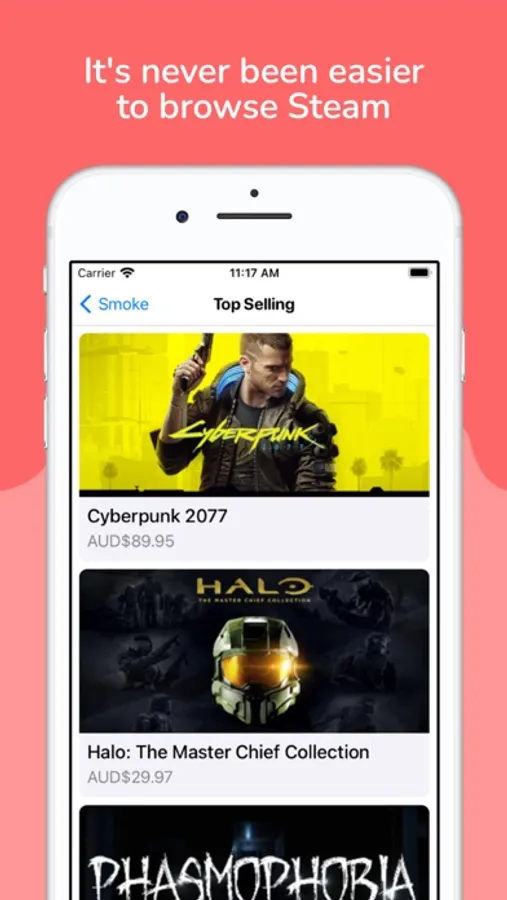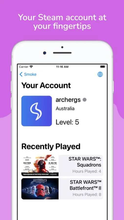 Smoke is a third-party Steam client for the Apple Watch, iPhone, iPad and Mac! With a super intuitive and simple interface, Smoke makes it easy to access all the games, news articles and live streams Steam has to offer, all in one place.
