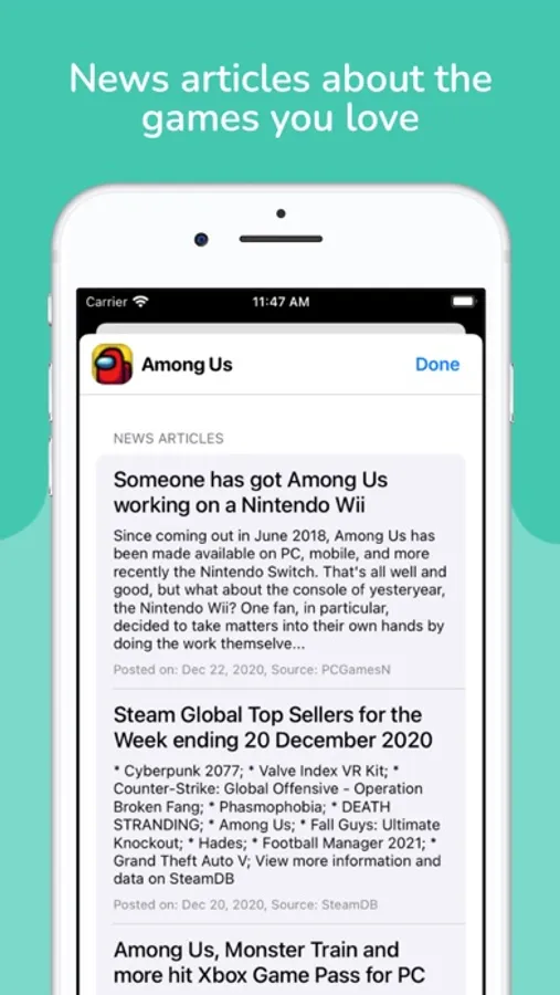 - Find and view news articles for the games you own